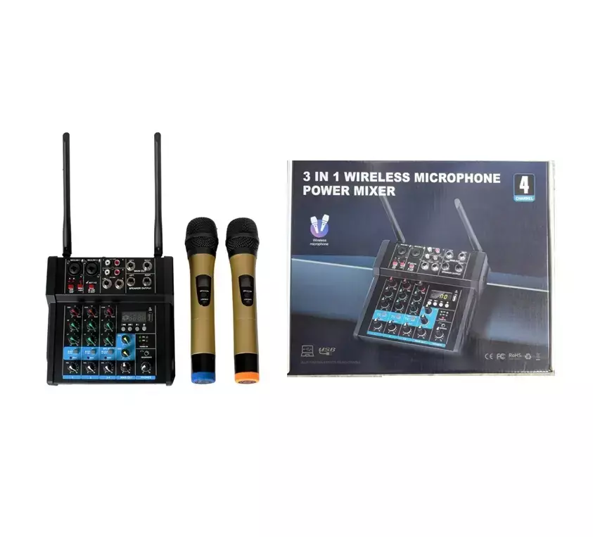 Elegí la YX-X9855 Mezcladora de 4 Canales con Amplificador y 2 Micrófonos y experimentá la combinación ideal de potencia, calidad y practicidad para tus proyectos de audio.